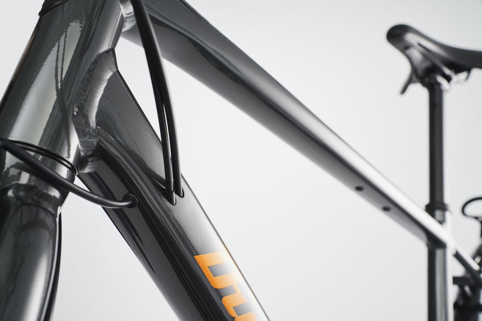 - Der extra-leichte Rahmen fährt sich spritzig und ist dank der innenverlegten Züge und sauberen Schweißnähte dein Design-Statement.
