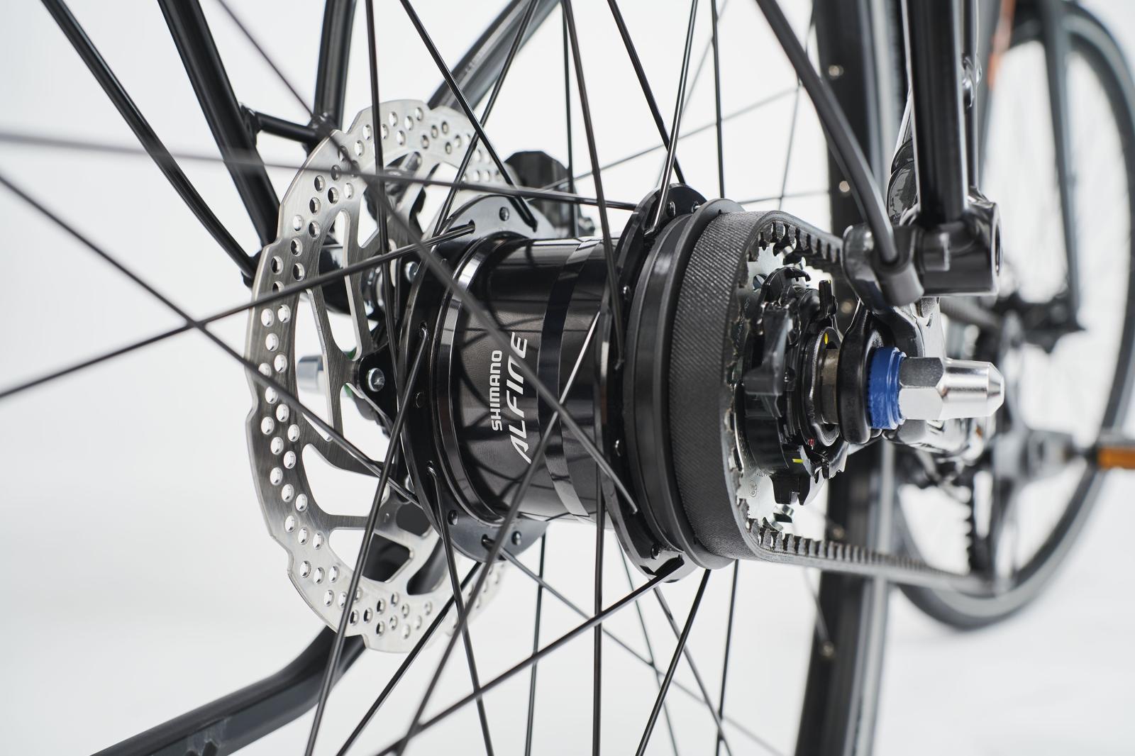 - Alfine 11 ist die Schaltnabe von Shimano, die mit einer breiten Übersetzung auch auf Anstiegen und Abfahrten Leistung zeigt.