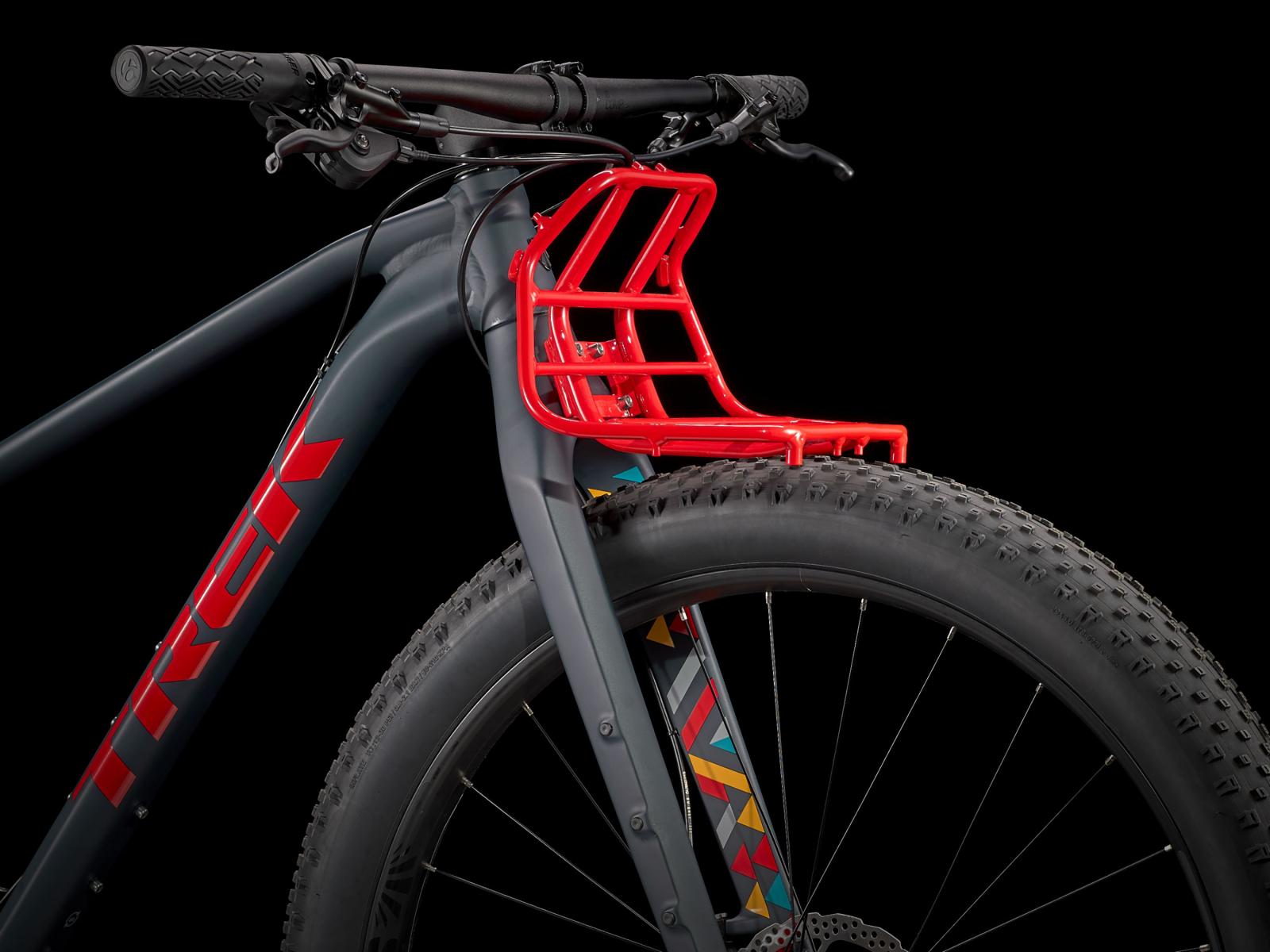 Einen Aluminiumrahmen mit verstellbaren horizontalen Ausfallenden hinten, eine Carbongabel, ein von Trek entwickeltes Gepäckträgersystem samt Aufnahmen für 8-Liter-Drybags deiner Wahl, einen 1x12-Antrieb von Shimano mit breitem Übersetzungsbereich, hydraulische 4-Kolben-Scheibenbremsen von Shimano für überragende Bremskraft, 29-Plus-Reifen und eine Bontrager Line-Variosattelstütze zum einfachen Auf- und Absteigen und für komfortable Abfahrten bei voller Beladung.