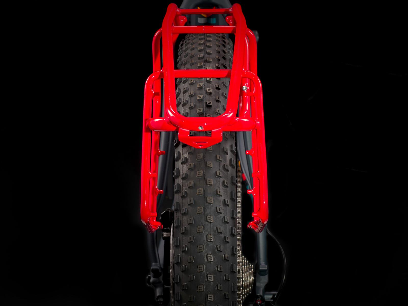 Einen Aluminiumrahmen mit verstellbaren horizontalen Ausfallenden hinten, eine Carbongabel, ein von Trek entwickeltes Gepäckträgersystem samt Aufnahmen für 8-Liter-Drybags deiner Wahl, einen 1x12-Antrieb von Shimano mit breitem Übersetzungsbereich, hydraulische 4-Kolben-Scheibenbremsen von Shimano für überragende Bremskraft, 29-Plus-Reifen und eine Bontrager Line-Variosattelstütze zum einfachen Auf- und Absteigen und für komfortable Abfahrten bei voller Beladung.