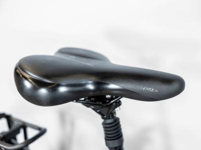 Einen leichten Rahmen aus Alpha Smooth Aluminium mit einer komfortablen, aufrechten Geometrie, eine Shimano Nexus Nabenschaltung mit 7 Gängen, eine Forklight 3.0 Federgabel mit integriertem Scheinwerfer, einen Shimano Nexus Nabendynamo am Vorderrad zur Speisung des Scheinwerfers und ein Rücklicht mit Standlichtfunktion. Außerdem bekommst du eine gefederte Sattelstütze, Rollenbremsen von Shimano, Schutzbleche, komfortable, ergonomische Griffe, einen verstellbaren Vorbau, einen MIK-kompatiblen Heckgepäckträger und breite, stabile 40C-Reifen mit reflektierenden Seitenwänden.