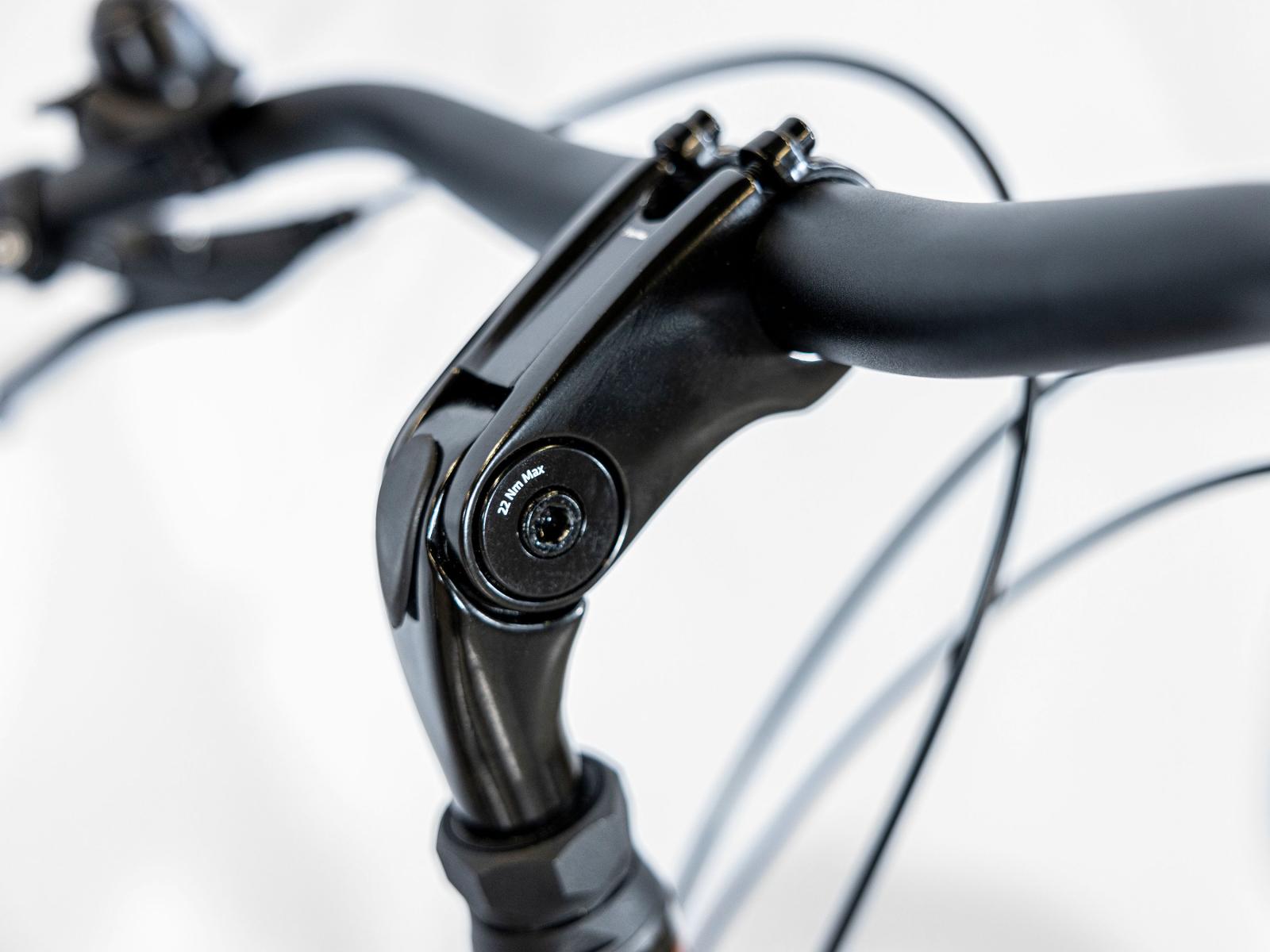 Lenkervorbau: Bontrager, Aluminiumschaftvorbau, 31,8 mm Klemmdurchmesser, verstellbarer Rise, Blendr-kompatibel, 85 mm Länge