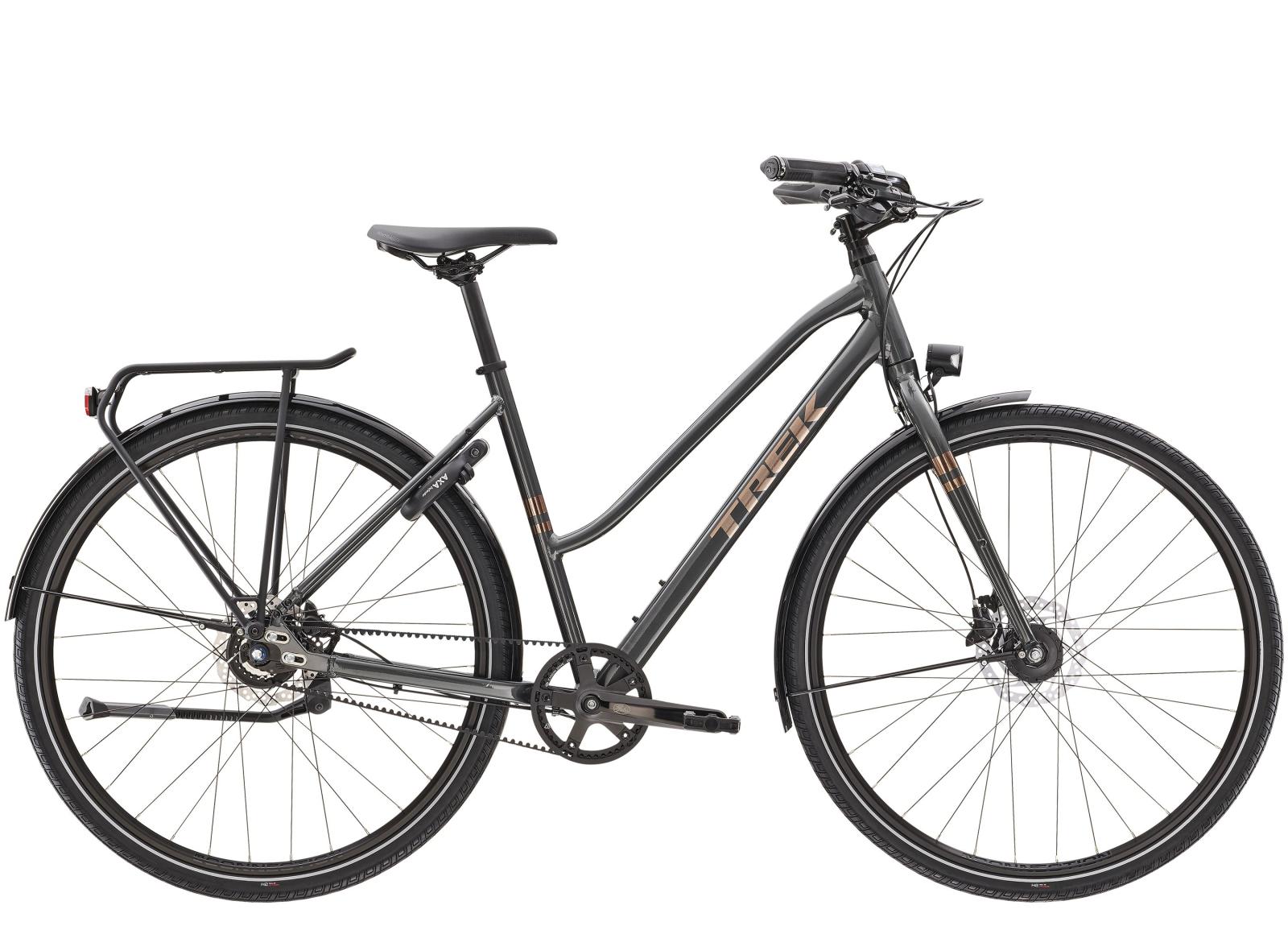 Einen leichten Rahmen aus Alpha Smooth Aluminium mit einer komfortablen, aufrechten Geometrie und Stagger-Design, einen Gates CDX-Riemenantrieb mit einer Shimano Alfine-Nabenschaltung mit 8 Gängen und einen Shimano-Nabendynamo am Vorderrad zur Speisung der Beleuchtung. Darüber hinaus kommt es mit hydraulischen Scheibenbremsen, Schutzblechen, komfortablen, ergonomischen Griffen, einem verstellbaren Vorbau, einem MIK-kompatiblen Heckgepäckträger und breiten, stabile Reifen mit reflektierenden Seitenwänden.