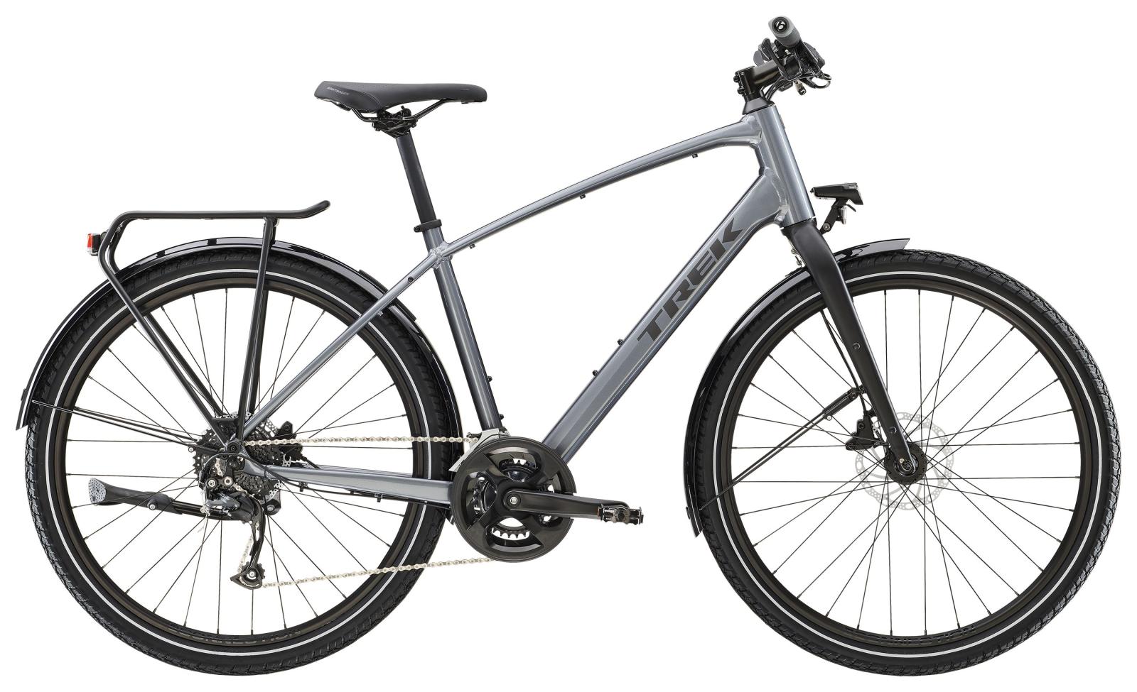 Einen leichten Aluminiumrahmen mit interner Zugführung für einen sauberen Look, 650B-Laufräder mit breiten 50C-Reifen zur Verbesserung der Geländegängigkeit und des Komforts in abwechslungsreichem Terrain, eine zuverlässige 2x9-Schaltung von Shimano mit breitem Übersetzungsspektrum, komfortable ergonomische Griffe, kraftvolle hydraulische Scheibenbremsen für zuverlässige Bremsleistung bei jeder Witterung, einen MIK-kompatiblen Gepäckträger, Beleuchtung, Schutzbleche und einen Seitenständer.