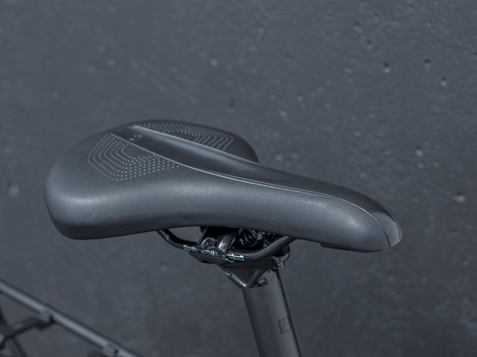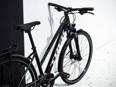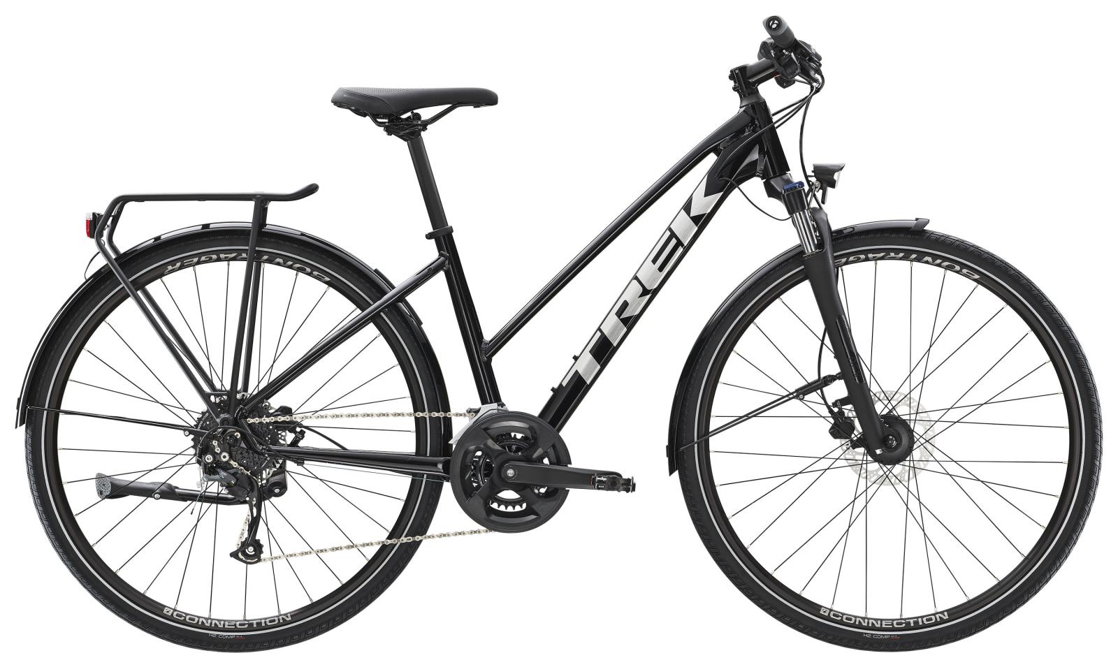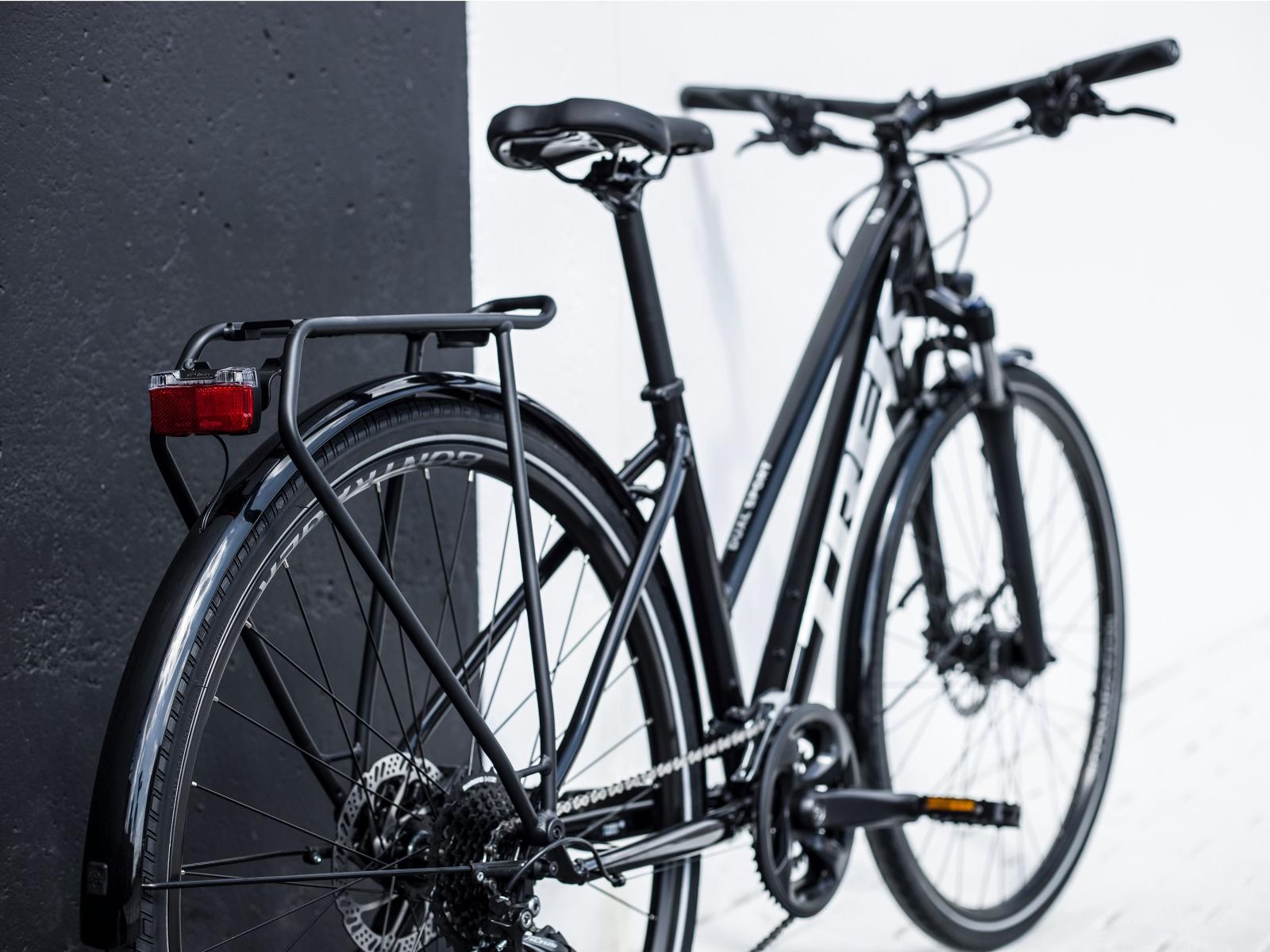Einen robusten Aluminiumrahmen mit Stagger-Geometrie zum einfachen Auf- und Absteigen, eine Federgabel mit Lockout-Funktion und einen 2x9-Antrieb von Shimano mit breitem Übersetzungsbereich. Für Sicherheit und Komfort sorgen ein Nabendynamo am Vorderrad zur Speisung von Scheinwerfer und Rückleuchte, breite, schnell rollende All-Terrain-Reifen von Bontrager für eine Extraportion Traktion, hydraulische Scheibenbremsen, ergonomische Griffe, Schutzbleche, ein MIK-kompatibler Heckgepäckträger und ein Seitenständer.