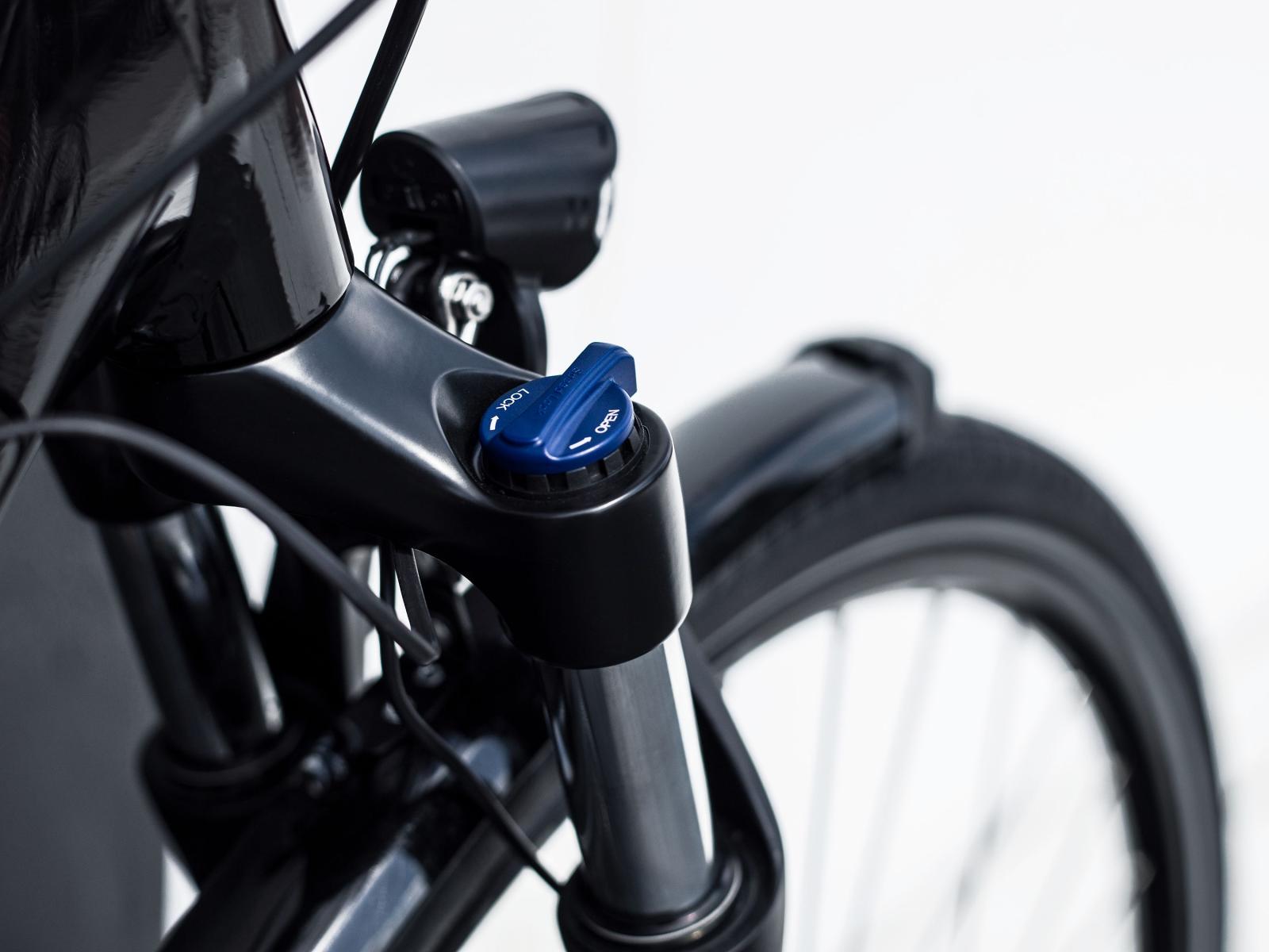 - Dank der Lockout-Funktion an der Federgabel bist du jederzeit effizient unterwegs: blockiert auf glattem Asphalt, geöffnet auf holprigerem Untergrund.