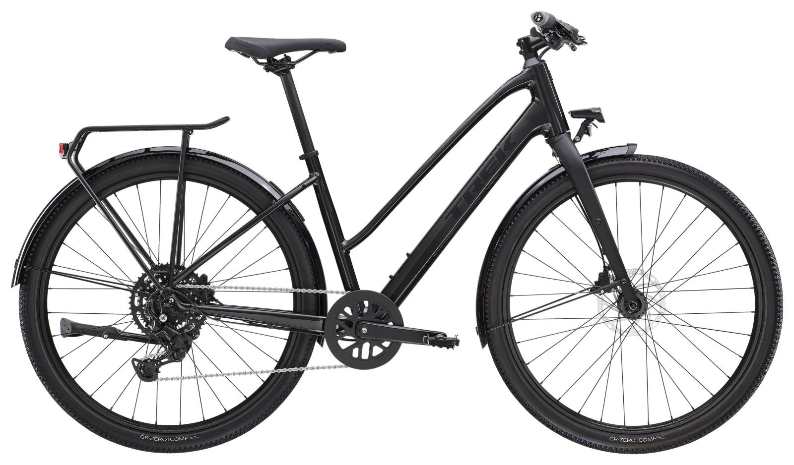 Einen leichten Aluminiumrahmen mit tiefem Durchstieg und interner Zugführung für einen sauberen Look, 27,5 Zoll große Laufräder mit breiten 50C-Reifen zur Verbesserung der Geländegängigkeit und des Komforts in abwechslungsreichem Terrain, eine zuverlässige Shimano CUES 1x9-Schaltung mit breitem Übersetzungsspektrum, komfortable ergonomische Griffe, kraftvolle hydraulische Scheibenbremsen für zuverlässige Bremsleistung bei jeder Witterung, einen MIK-kompatiblen Gepäckträger, Beleuchtung, Schutzbleche und einen Seitenständer.